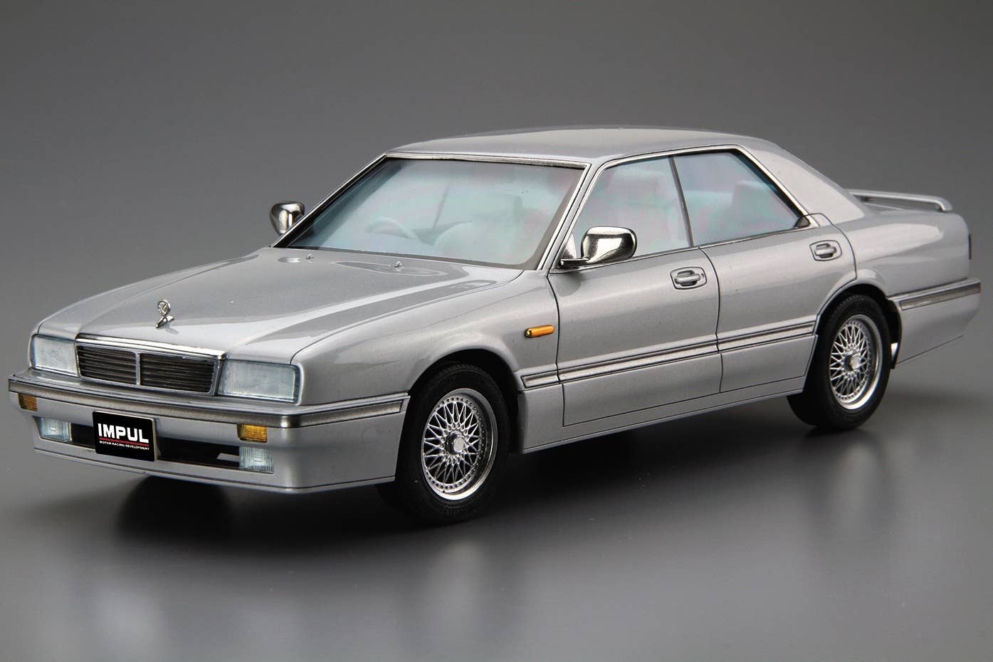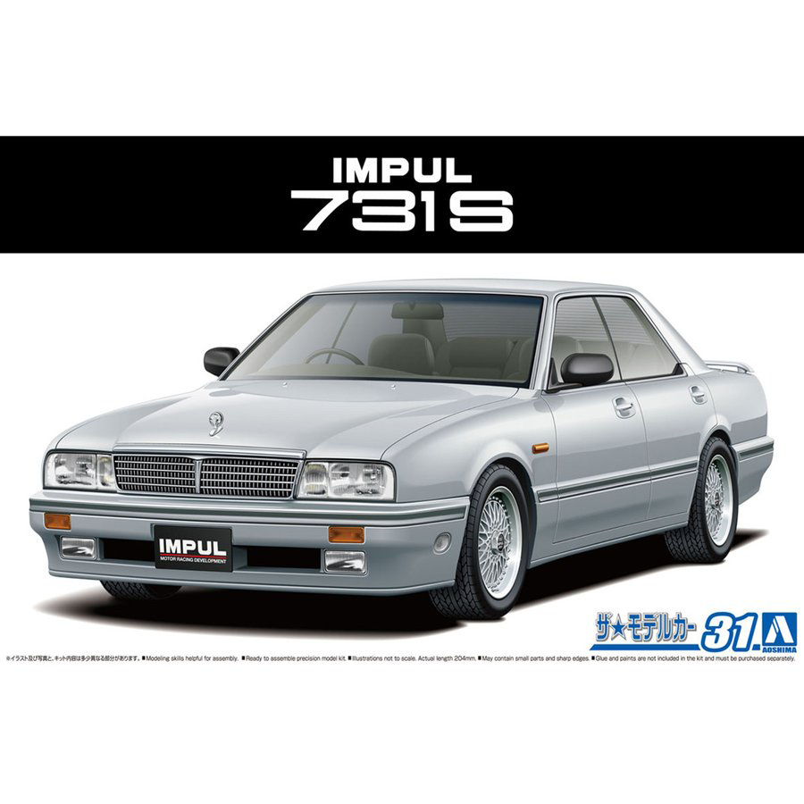 Aoshima brings us this 1/24 scale Impul Y31 Cima 731S '89 model kit! Not only are the VG30DET engine and Impul R-1 aluminum wheels here, but also the "IMPUL731S AERODYNAMICS SYSTEM" is realistically reproduced.