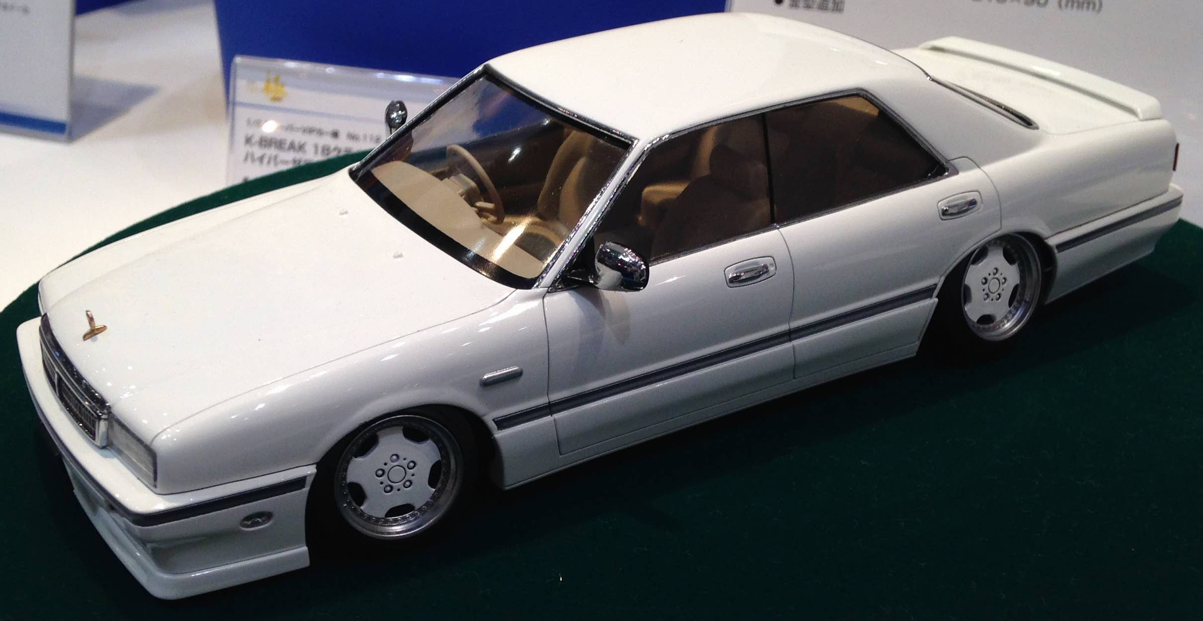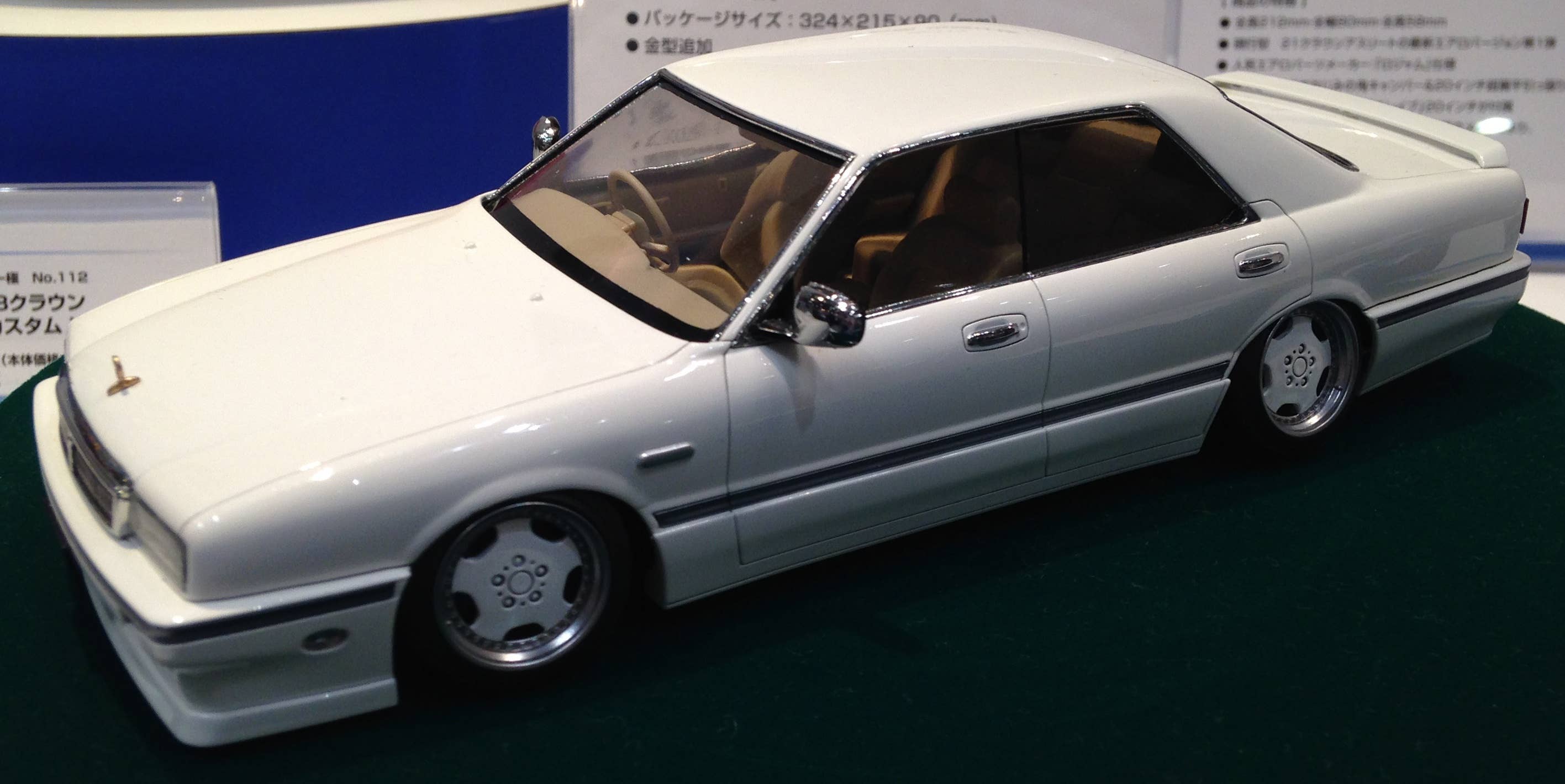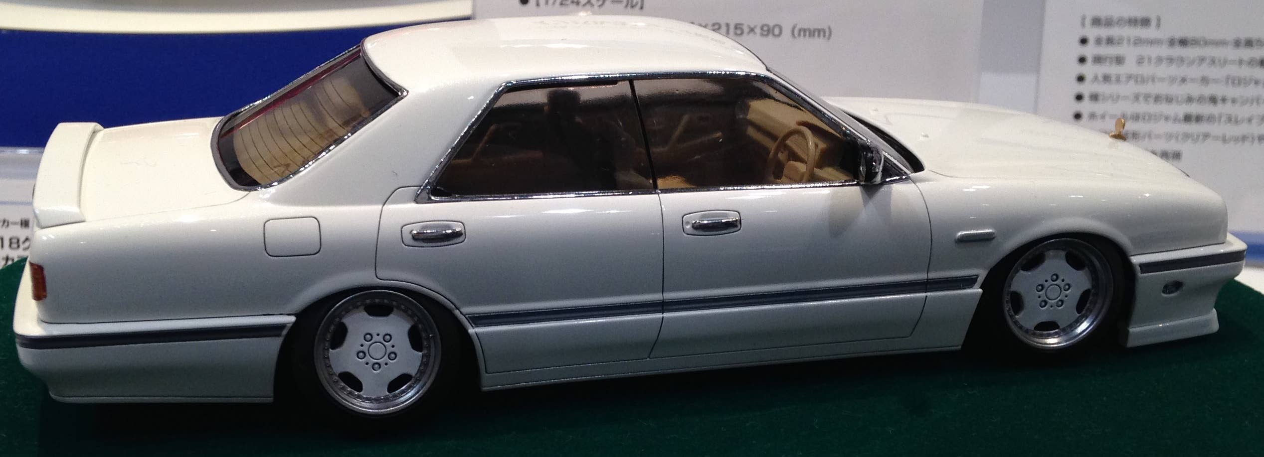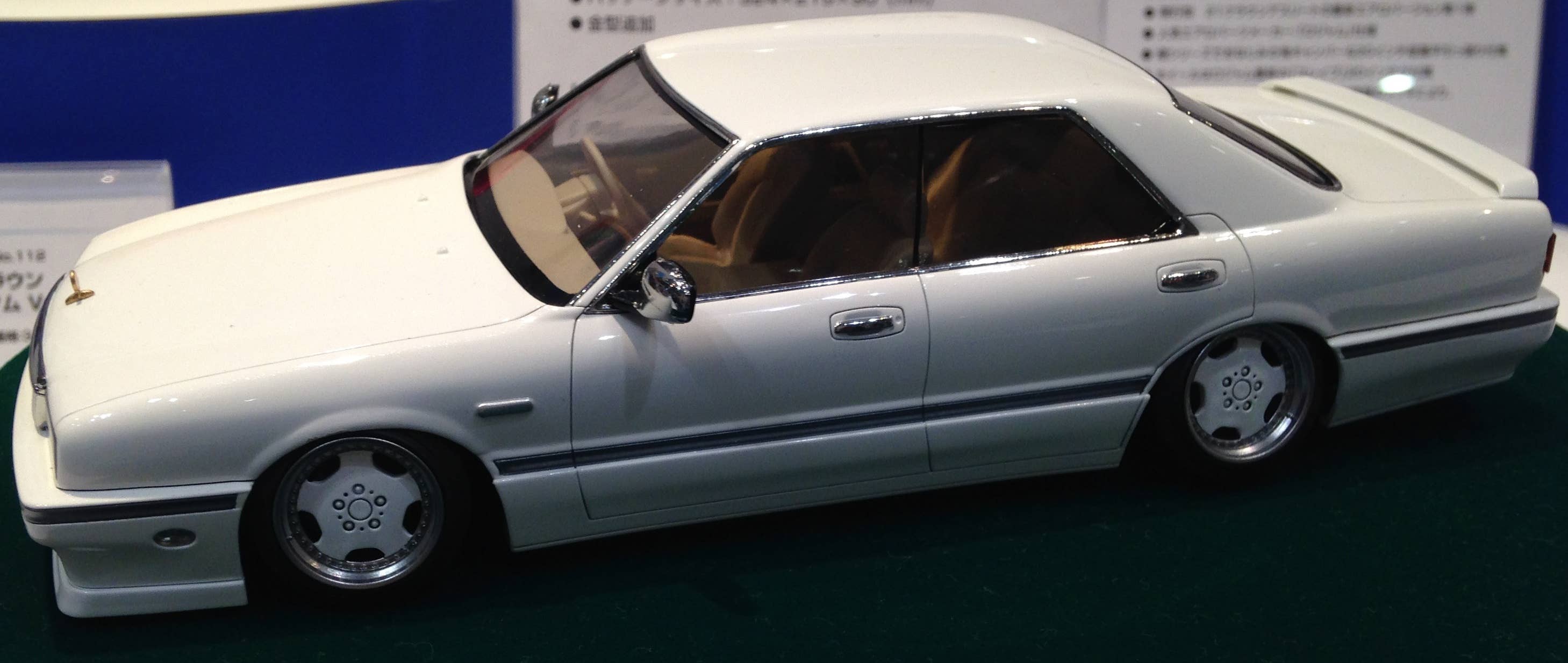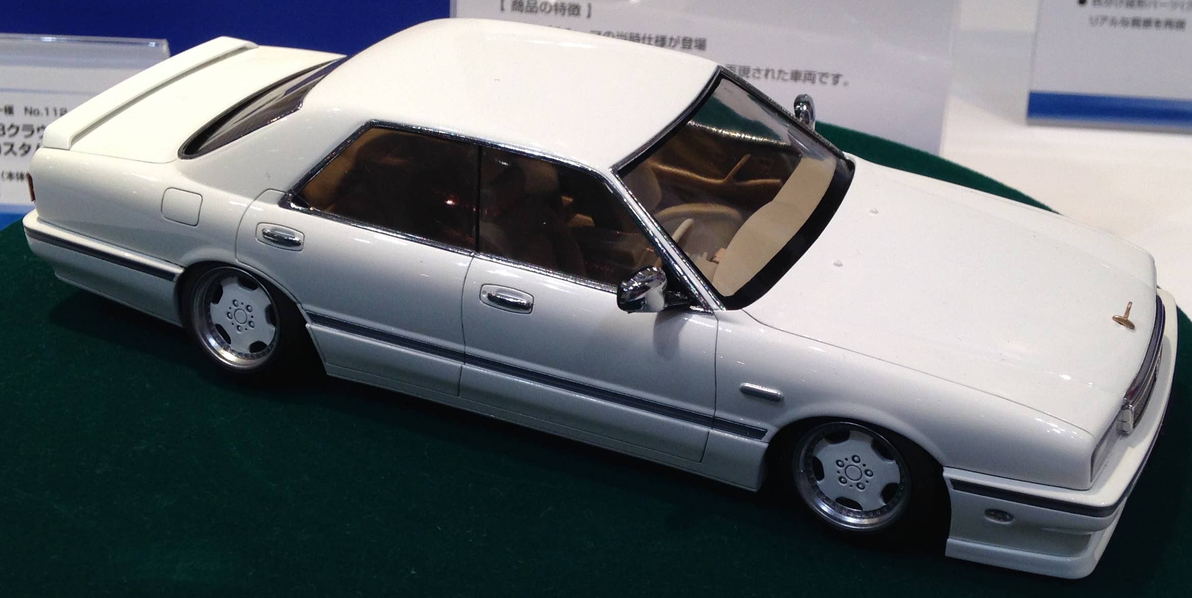 This kit also features newly designed “Kiwami” parts that make it possible to recreate a low vehicle height and realistic negative camber angle. The tires also feature a thinner inside and thicker outside to help keep the profile low. Wheels are 17 inch Zauber dish type.