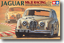 The Mk.II Jag from the late '50s. Hood opens and closes. Wire racing wheels are silver-plated. Front and rear bumpers without overriders. Grill is coarse-type to improve cooling efficiency. Decals for interior wood panels included.
