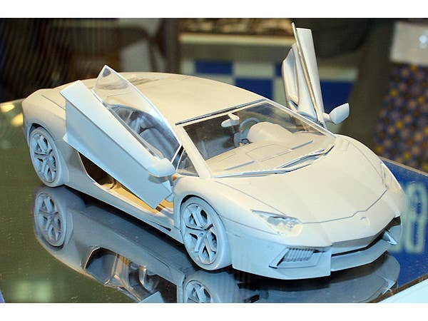 An all-new tooling of the fantastic Lamborghini Aventador! The kit features fantastic detail and positionable (but not movable) scissor doors. Body molded in white, interior and chassis in gray. Two sets of wheels are included; matte chrome, and black. Includes photo-etched metal parts and pre-cut window masks from KA Models of Korea.