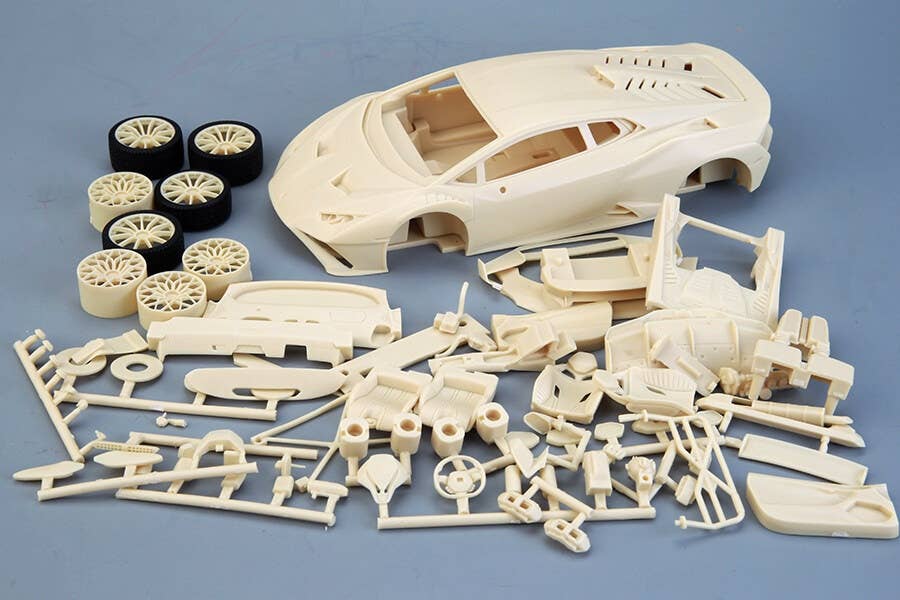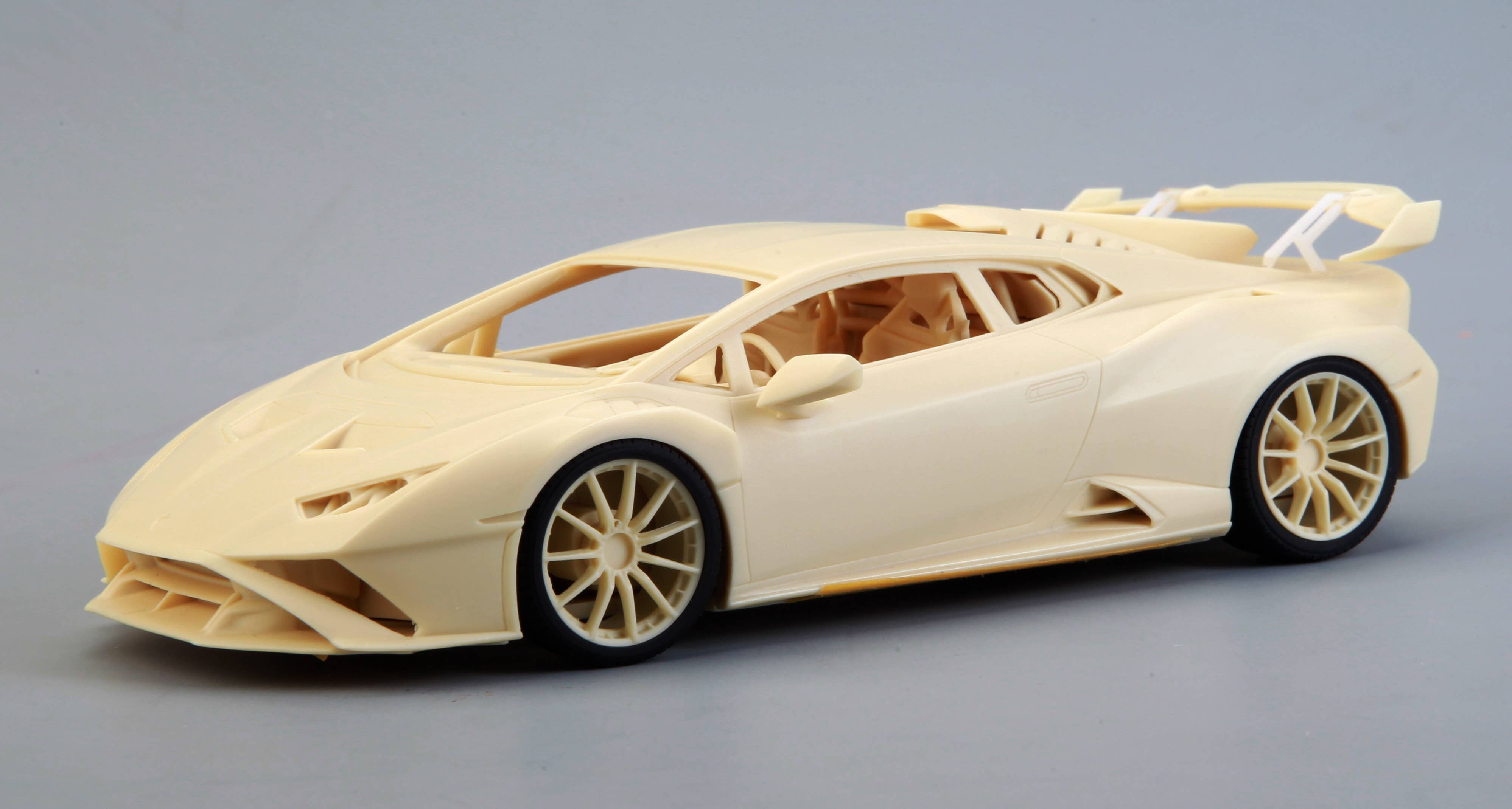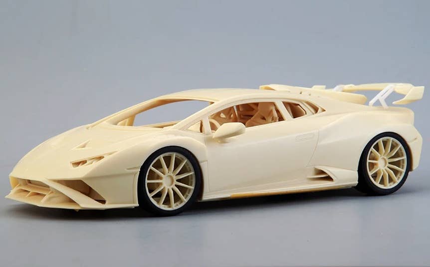 This full resin model kit of the stunning Lamborghini Huracan STO is exactly what any car fan needs in their collection! In addition to resin parts for the car itself and the dashboard, it also comes with photo-etched parts, waterslide decals, rubber tires, and clear resin parts for the windows and lights. Some experience building resin kits will be helpful. Order yours today!