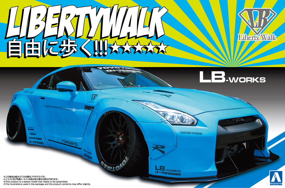 This 1/24-scale model kit of the R35 GT-R Ver. 1 from Aoshima features powerful screw-fastened Works style! Includes: