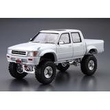 Aoshima's 1/24-scale model kit of the LN107 1994 Toyota Hilux Pickup Double Cab Lift Up features a special chassis with a significantly increased ride height and impressive tires! The chassis parts are plated, and aluminum wheels and window frame masking stickers are included. Place your order today!