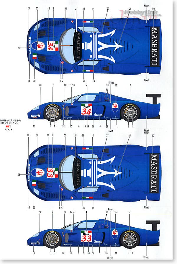 An extremely detailed and advanced multi-media kit from E. Jan. The body is finely cast in resin, with detail parts rendered in white metal, metal rod, metal tubing, turned aluminum, vacu-formed plastic, and other materials. Includes markings for two 2004 Maserati Racing MC12 cars. Experience working with multi-media kits helpful.