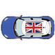 A highly-detailed kit of the Mini Cooper S Countryman All4 Union Jack Ltd.. Body molded in white, interior and chassis molded in gray and black. Features matte chrome wheels and black rubber tires, plus decals for the exterior and interior. A curbside kit, with no engine parts.