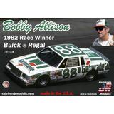 Speed machines driven by charismatic drivers during the Golden Age of NASCAR from the 1970s to the 1980s are now featured in model kits from Salvino JR Models! These kits will also include decals by PowerSlide, Inc., as well as soft resin tires with decals. In addition, chrome parts feature real plastic chrome plating to reproduce a realistic texture. This kit spotlights the Buick Regal #88, driven by Bobby Allison to the win in NASCAR 1982 -- order yours today!