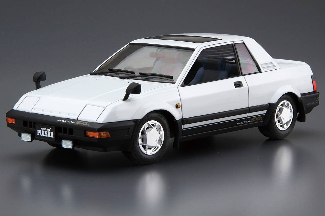 Check out the 1/24 scale Nissan HN12 Pulsar EXA '83 car model kit from Aoshima! It comes with genuine and aftermarket aluminum wheels, spoilers, and custom steering wheels for a refreshed look. It also boasts a high amount of customization, allowing the user to build the Pulsar EXA to one's own preference. Order for your model kit collection today!