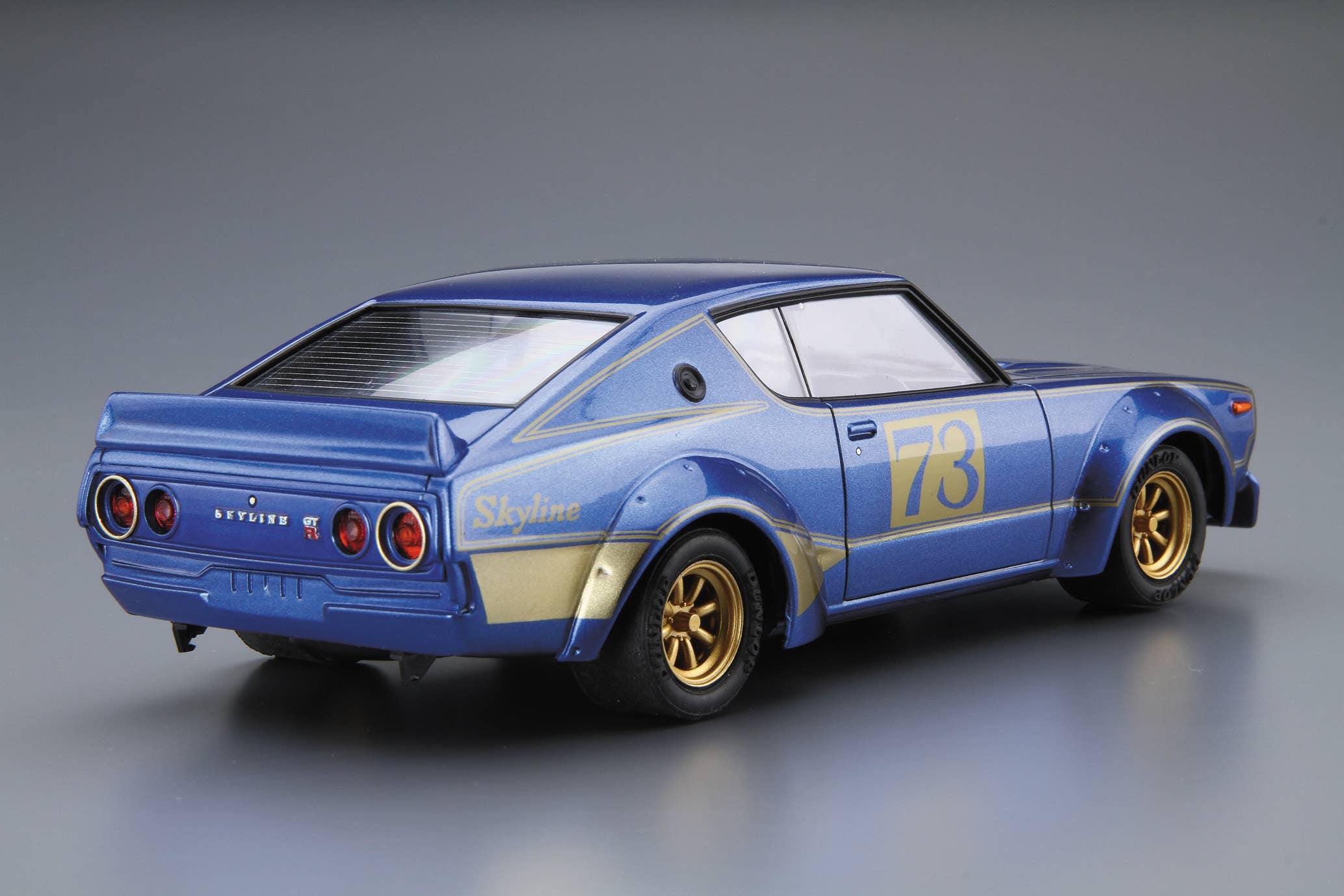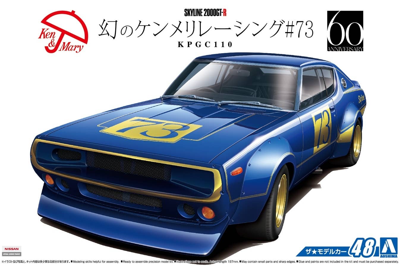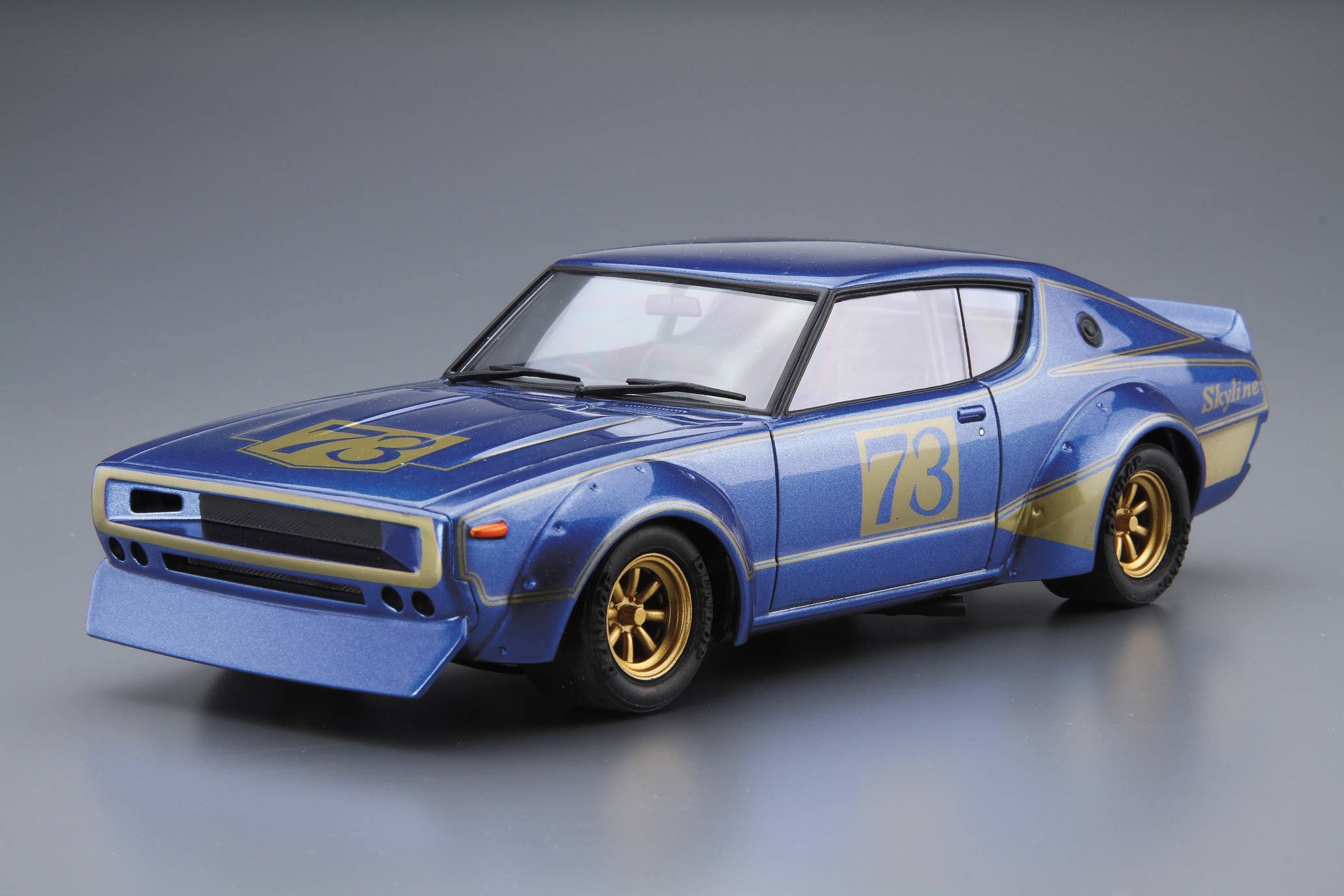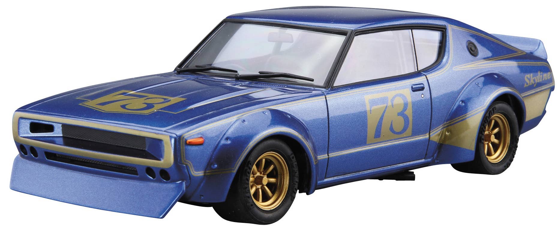 The 60th anniversary of the Skyline is cause for celebration--and building this kit is a great way to do it! From the box: "After a record of 50 wins of which 49 were consecutive, the Hakosuka GT-R made a full model change to the next generation 'Ken & Mary' C110 Skyline in September 1972. At the 19th Tokyo Motor Show of the same year, 2000GT-R Skyline hardtop with racing spec was displayed. With its large spoilers, works fender and racing colors, there was no doubt that the 2000GT-R was to be successful in circuits. Unfortunately, due to the oil crisis combined with emission regulations, 2000GT-R never took part in circuits. Its racing image remains only in a racing poster. However, the popularity of the 'unfortunate GT-R' contnues to live on in the hearts of fans today.