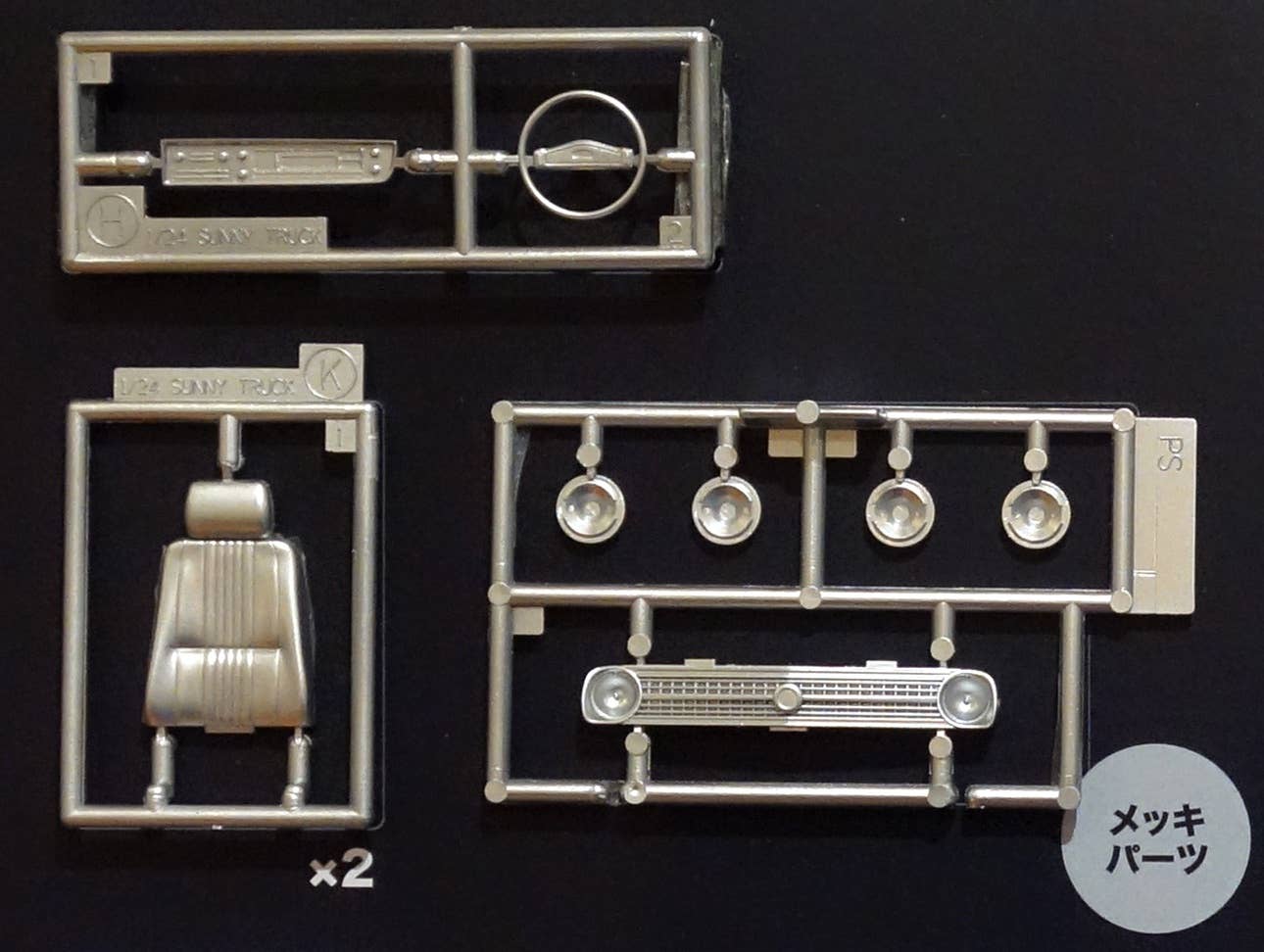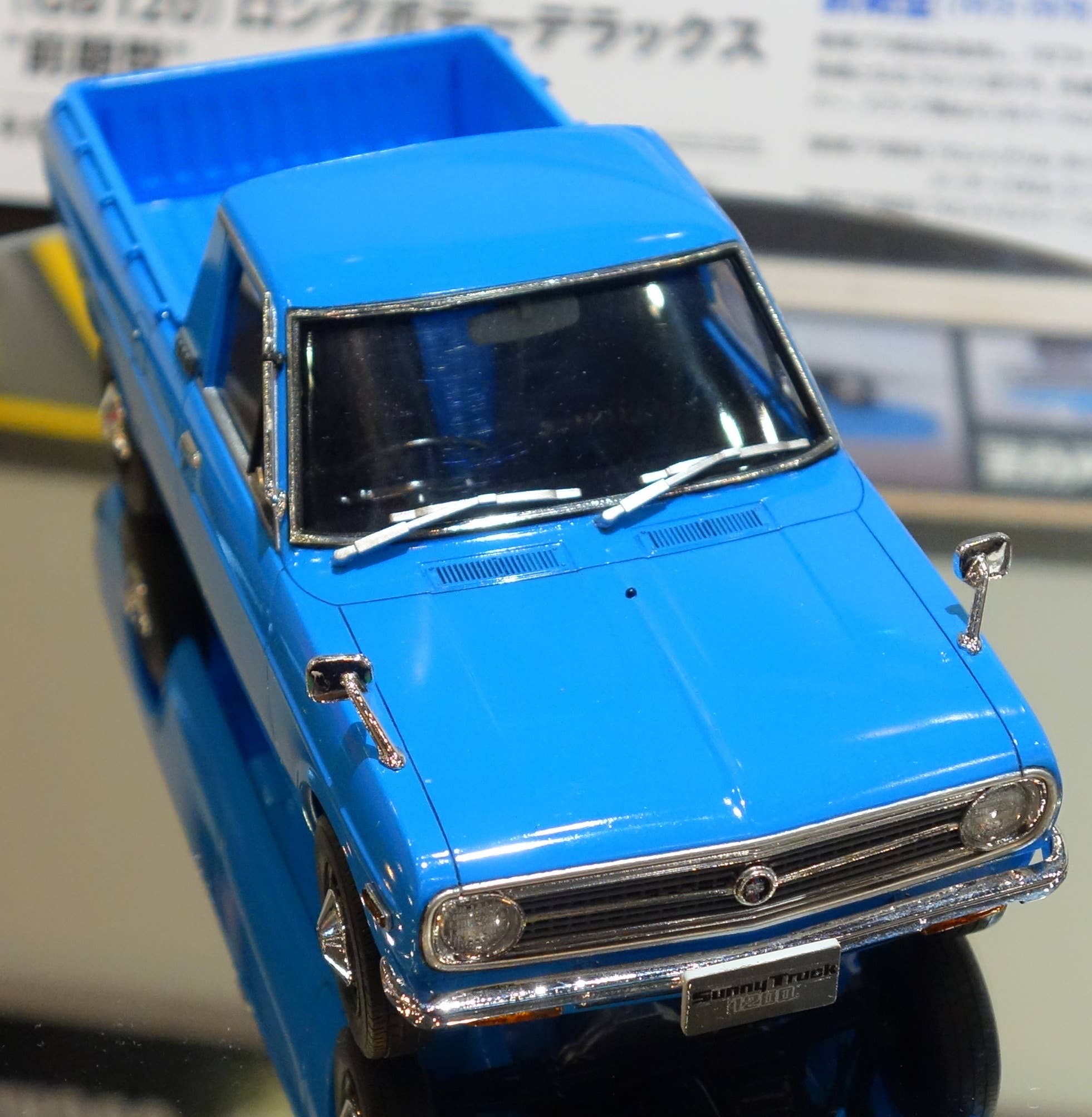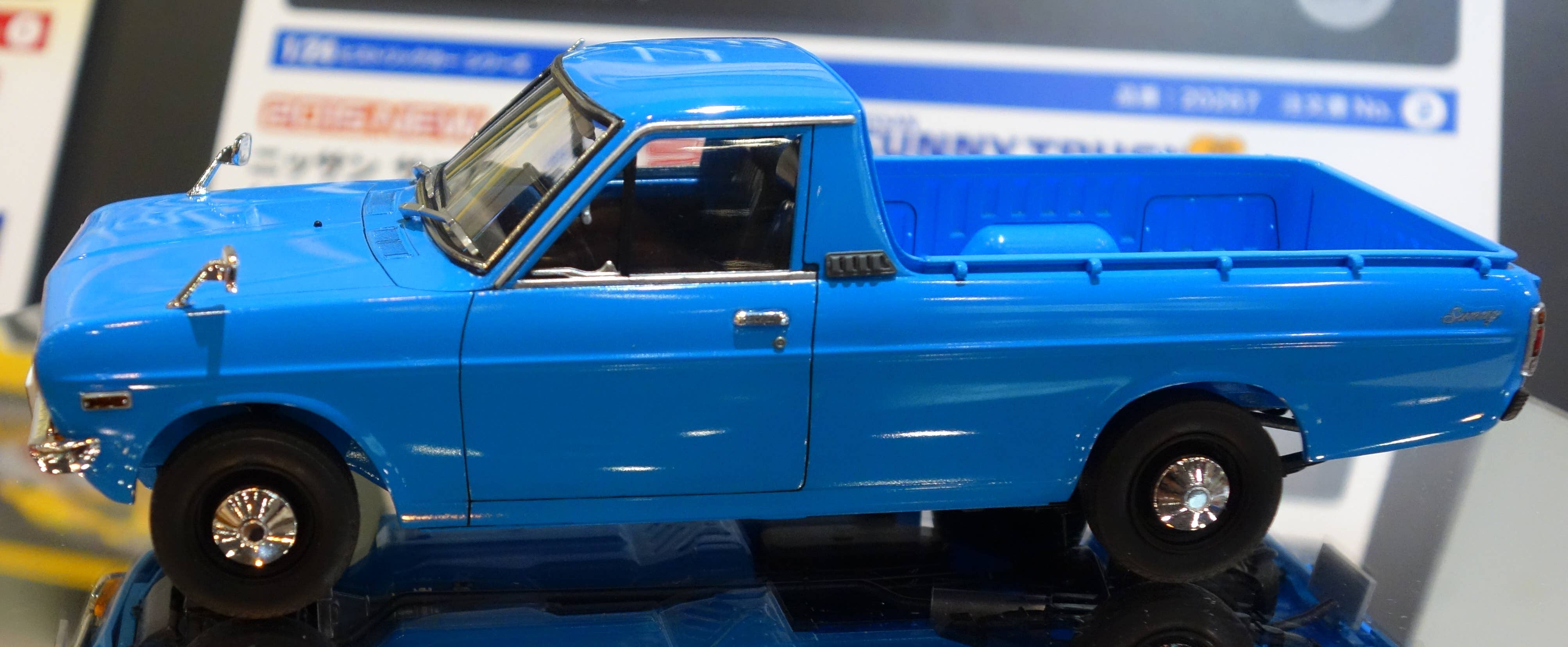 The Nissan Sunny Truck, based on the Sunny car chassis, was first released in 1971 and rapidly found a niche in Asian markets. American markets, however, were cut off from access to the Sunny because of tariffs enacted in 1964 to protect poultry production. It wasn't until after the repeal of the tariffs in the beginning of the new millennium that Americans could experience the fuel economy, comfort, and reliability that the Sunny had to offer. This limited edition kit features new grille, hubcap, seat, and steering wheel parts from early version Sunny trucks.