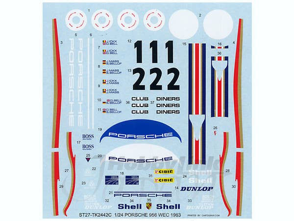 This is a sheet of water-slide decals for marking car models.
