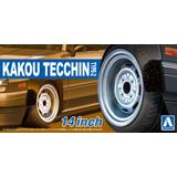 This is a set of plastic or metal wheels and rubber-like tires for detailing car models.