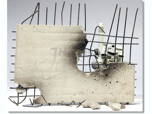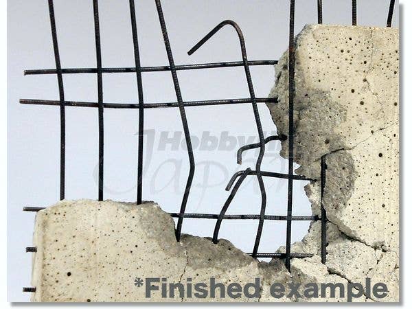Not only is Shizuoka Create's line of scale architectural modeling supplies educational and practical, but it has unlimited hobby uses as well! The rebar is available in four sizes (see below), so you can mix and match to create models suitable for scales between 1/12 and 1/48. The rebar is fabricated by a 110-ton press to create replicas of D13, D16, D22, and D32-type rebar. Of course, you can mix and match the different rebar to represent any scale you want! The powdered mortar used is just like the real thing, except that it looks like the real thing in scale! Resin has been added to give the mortar an incredibly realistic scale "grain" that looks just like scale concrete, with that nice concrete sheen on the smooth surfaces and very realistic grain on broken sections or when reduced to rubble. Perfect for military or science fiction dioramas where you need to show destruction and mayhem! A well-placed whack with a hammer gives you very realistic damage, including perfect scale cracks. The mortar even features various colored flecks and dots of material as seen in real concrete, again in perfect scale! The perfect product for amazing dioramas!