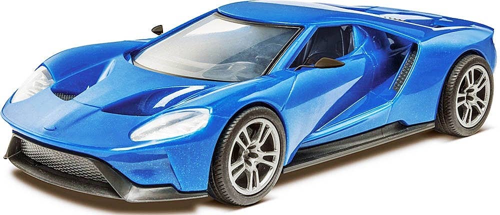 The original Ford GT was developed by Ford in 1964 for the prestigious 24 Hours of Le Mans race in France. Ford wanted to prove they could not only compete with the best in the world, but win. After a few rough starts, the Ford GT won the Le Mans race 4 years in a row. Now, on the 50th Anniversary of the first win, Ford has developed an all new Ford GT using advanced technology and the mechanical know-how perfected over five decades. Kit features detailed interior, disc brakes, and metal axles. Molded in color.
