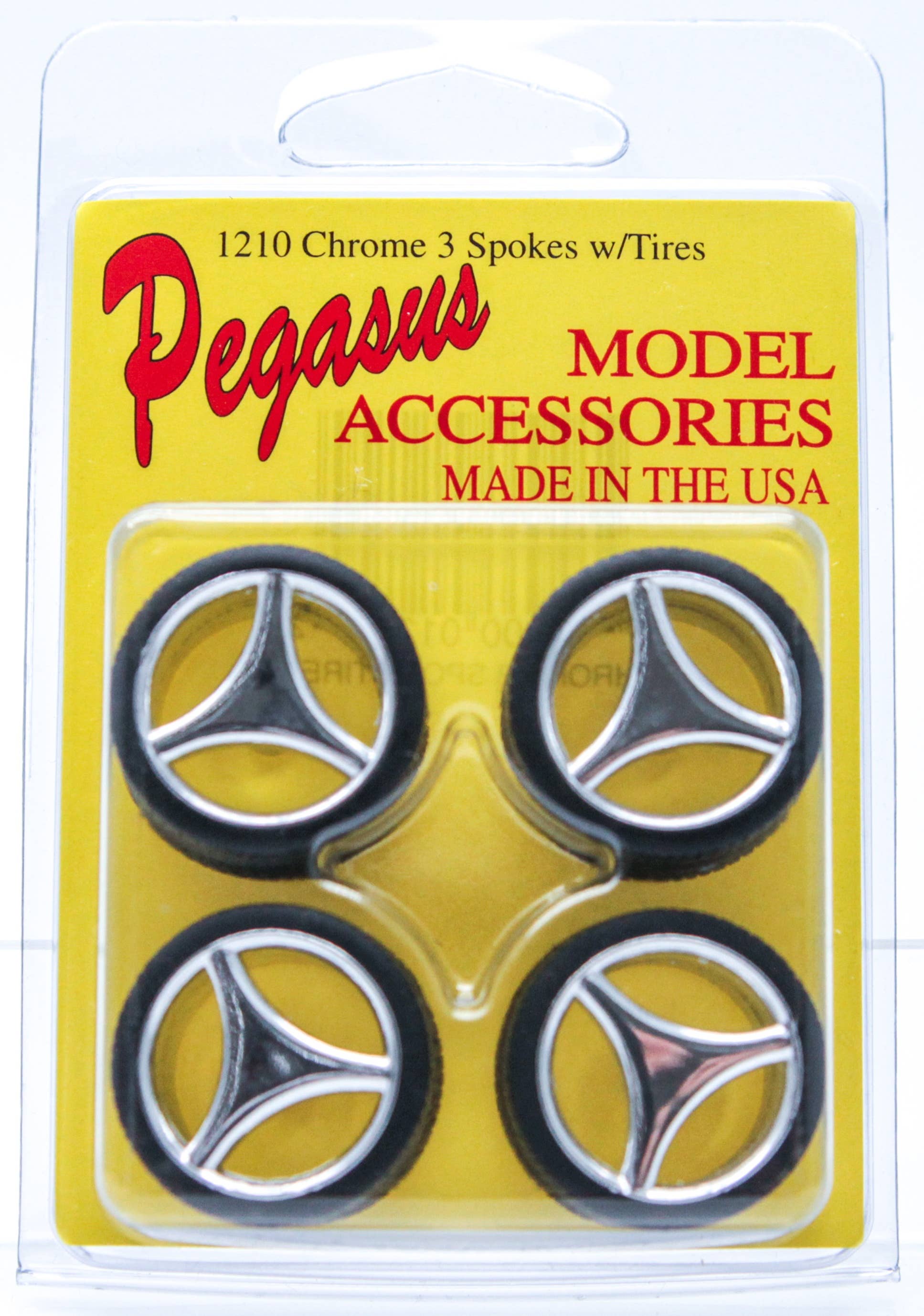 Exquisitely detailed from their precisely patterned tread to their gleaming chrome, here's an eye-grabbing set of four 1/24-scale wheels with tires! The center bearings on the back have been drilled to accommodate shafts with an inner diameter of about 2mm. Detail your model car the way it deserves, with this fine offering from Pegasus Hobby!