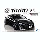 Aoshima's detailed kit of the super-sporty Toyota 86! This version features custom wheels. Can be built as either a Toyota 86, Toyota GT86, or a Scion FR-S. Includes both left-hand and right-hand drive parts.