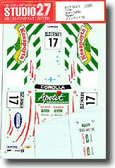 Complete and accurate markings for the Toyota Corolla WRC as it appeared at the 2000 Finalnd Rally. In "Apetit" markings. Studio 27`s usual high level of quality. Decals are perfectly registered with almost no excess film around edges. Very thin. Includes color guides and placement charts.