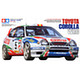 Tamiya's WRC version of the Toyota Corolla is their usual "breeze-to-build" type kit with sharp detail nonetheless. If you're a real detail maniac, we suggest the Hasegawa kit, but the Tamiya version is probably a safer route for a more casual modeler. Comes with window masking stickers, rubber tires, plastic mesh for the grilles and complete decals to finish the car as it appeared in the 1998 Catalonia Rally.