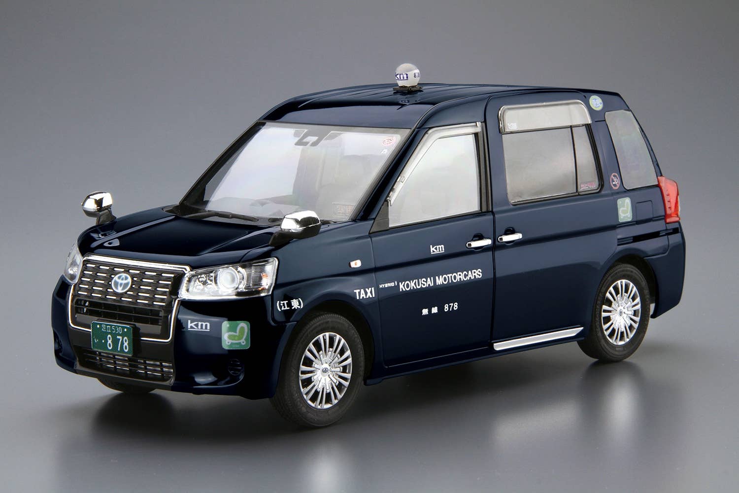 Toyota JPN TAXI was released in 2017 as a successor to Toyota Comfort and Toyota Crown Sedan. The passenger door is an electrical slide door and its lower floor makes enough space to accommodate passengers. The big windows are suitable for tourists to enjoy the outside scenery. In Tokyo, the deep indigo color JPN TAXI is mainly arranged. This kit replicates Toyota JPN TAXI the high-end "Takumi" model in catalog specification. Parts partition makes this kit suitable for beginners, and window masking seals help to paint easier. The interior decoration such as a taximeter or roof lamp replicated in detail. The sliding door can be left opened to express your favorite scene.
