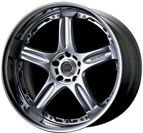 This is a set of plastic or metal wheels and rubber-like tires for detailing car models.