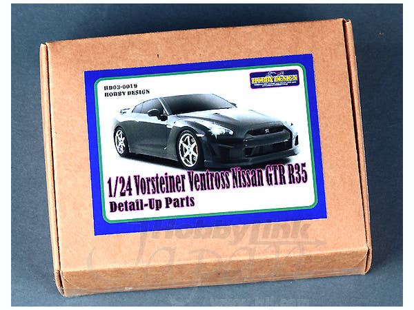 A set of resin, photo-etched metal, and metal parts to create a Vorsteiner Ventross Nissan GT-R R35 model. Base kit not included. No particular kit is specified by Hobby Design, so it may be applicable to any Nissan GT-R R35 model...but be aware that it might take some modifications to install this set on your particular model.