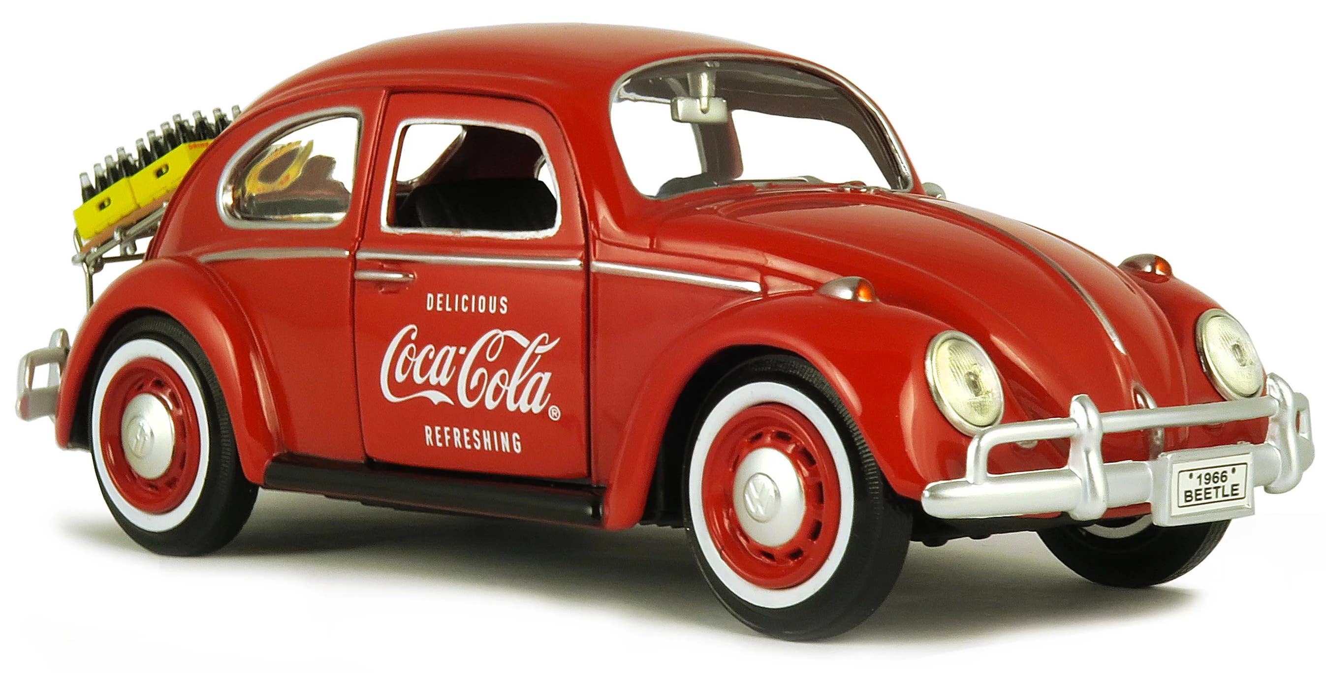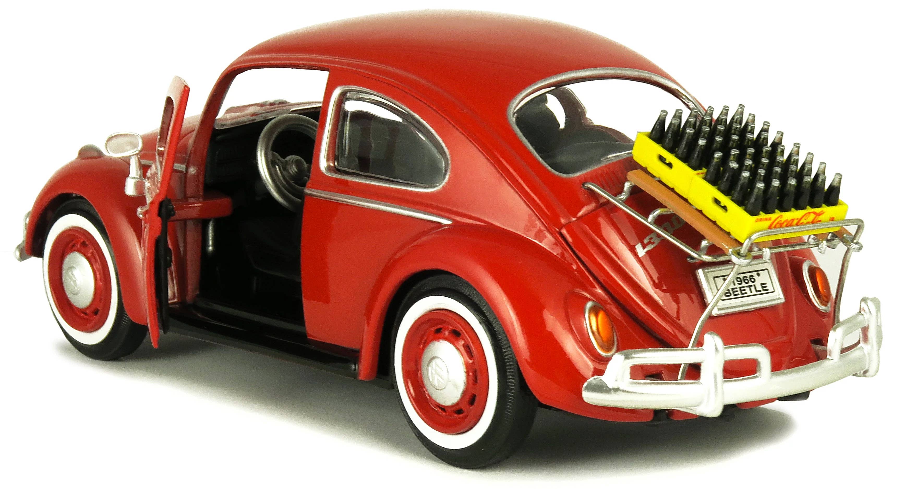A beautifully completed 1/24 scale die-cast display model of a VW Beetle Red 1966 in bright Coca-Cola red. Comes with rear luggage rack and two bottle cases. You can enjoy high quality from interior to exterior. Order yours today!