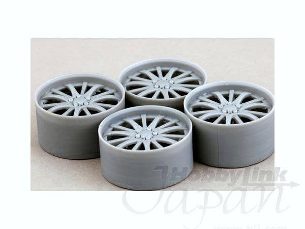 This is a set of plastic or metal wheels for detailing car models.