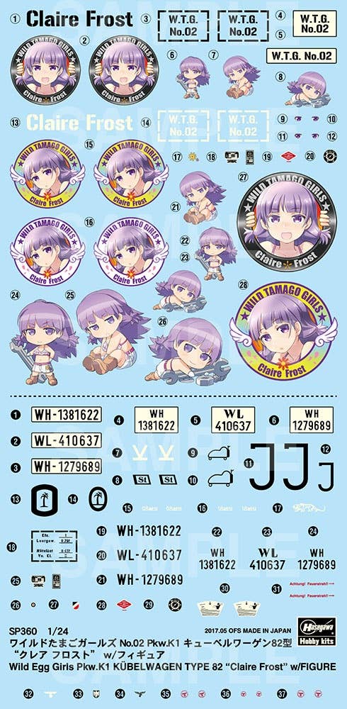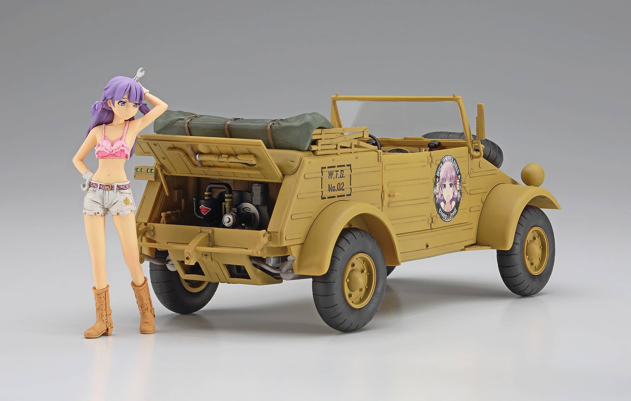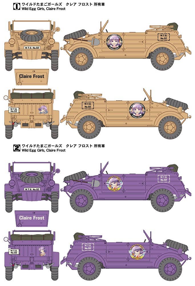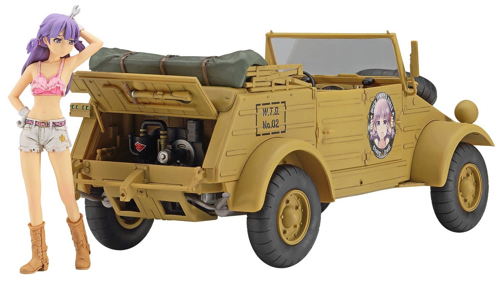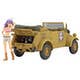 The Egg Plane Girls really know their transportation! The Kübelwagen is an all-terrain icon made infamous by the Germans during WWII. It followed German advances through Poland, France, North Africa, and into Russia. It followed the withdrawals, too. Its reliability was greater than that of virtually every other vehicle available to the Wehrmacht. By war's end, over 50,000 had been produced and many destroyed. Kit features two sets of decals and Claire Frost figure.