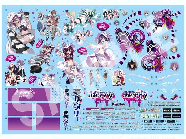 A cool "Yumekui Merry" "ita-sha" version of Aoshima's excellent Honda Odyssey Absolute 06 Custom! "Itasha" literally means "pain car" in Japanese, suggesting that these cars garishly decorated with colorful anime character graphics are embarrassingly painful to look at, or ride in. A bit harsh, perhaps, but there you have it! Another take on the name is that it's riffing on the similar sound of the nickname for Italian cars, also pronounced "Itasha" but with the kana for Italy's "Ita" in place of the kanji for pain (also pronounced "ita" in this combination). "Sha" in both cases means "car."