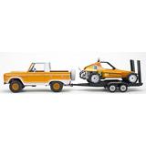 When Ford introduced the Bronco in 1965, it was offered in 3 different versions. This Version was called a pick-up truck. It had four-wheel drive and an off-road suspension. The Bronco was built on a 92-inch chassis, which it did not share with any other Ford product. The second vehicle in this set is a full size dune buggy. In the late 60s, dune buggies were very popular and most were powered by an air-cooled 4 cylinder boxer engine.