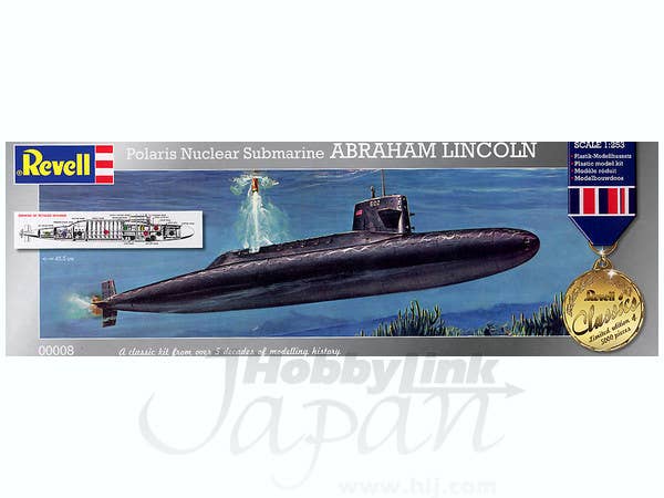 This vintage kit features a complete interior with removable hull sections, display stand, and decals for interior details and multiple submarine designations (not just the Abraham Lincoln). Measures a whopping 45.5cm when completed! A nice, nostalgic kit!