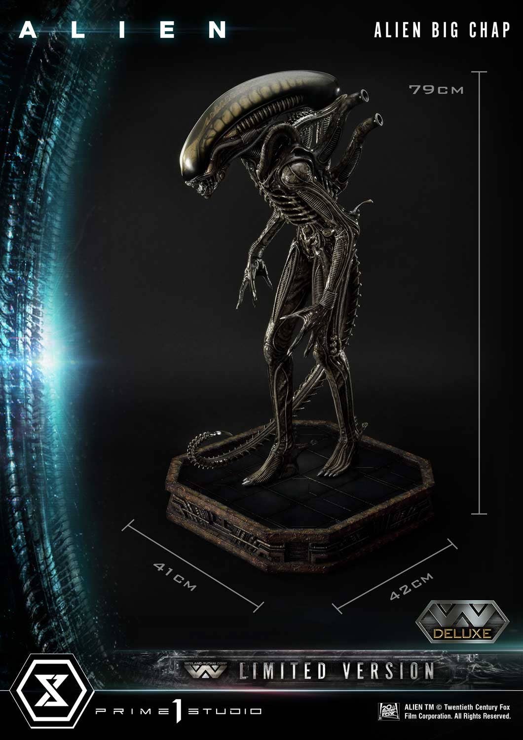 Prime 1 Studios celebrates their tenth anniversary by releasing this limited edition "Alien" Big Chap display figure! This figure is a rebuild of an item previously released as three-dimensional wall art; the back base for hanging on the wall has been eliminated, and the figure itself has been finished with great care so you can appreciate every detail of its physique from all directions. The Big Chap is seen stalking slowly, its mouth open as it tastes the air, hunting down its prey with patience and striking more terror with every step. This deluxe limited version comes with an interchangeable head with a closed mouth, plus a display stand that allows you to display the head not currently in use. This amazingly detailed figure will plunge you into the world of "Alien" every time you see it -- you'll be proud to show it off, so order it for your own collection today!