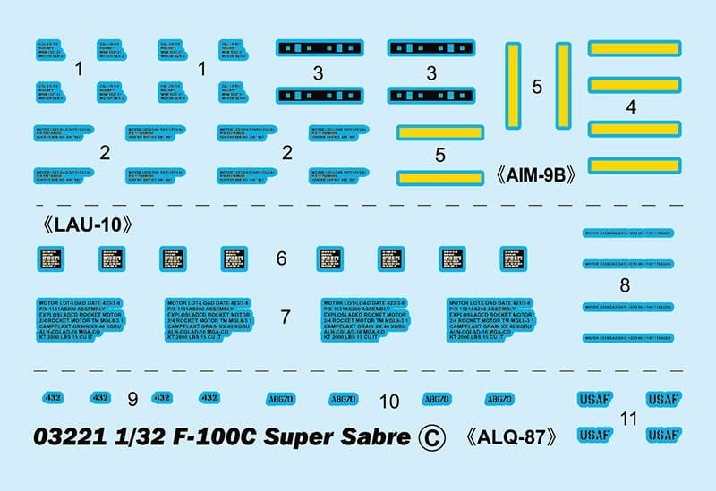This model kit from Trumpeter precisely reproduces the F-100C Super Saber, a fighter-bomber used by the U.S. Air Force! Its characteristic form, cockpit and engine are all carefully duplicated; photo-etched parts and decals for two versions are included (U.S. Air Force 36th Tactical Combat Wing, 22nd Tactical Combat Squadron FW-901, and 479th Tactical Combat Wing Commander FW-076). Order yours today!