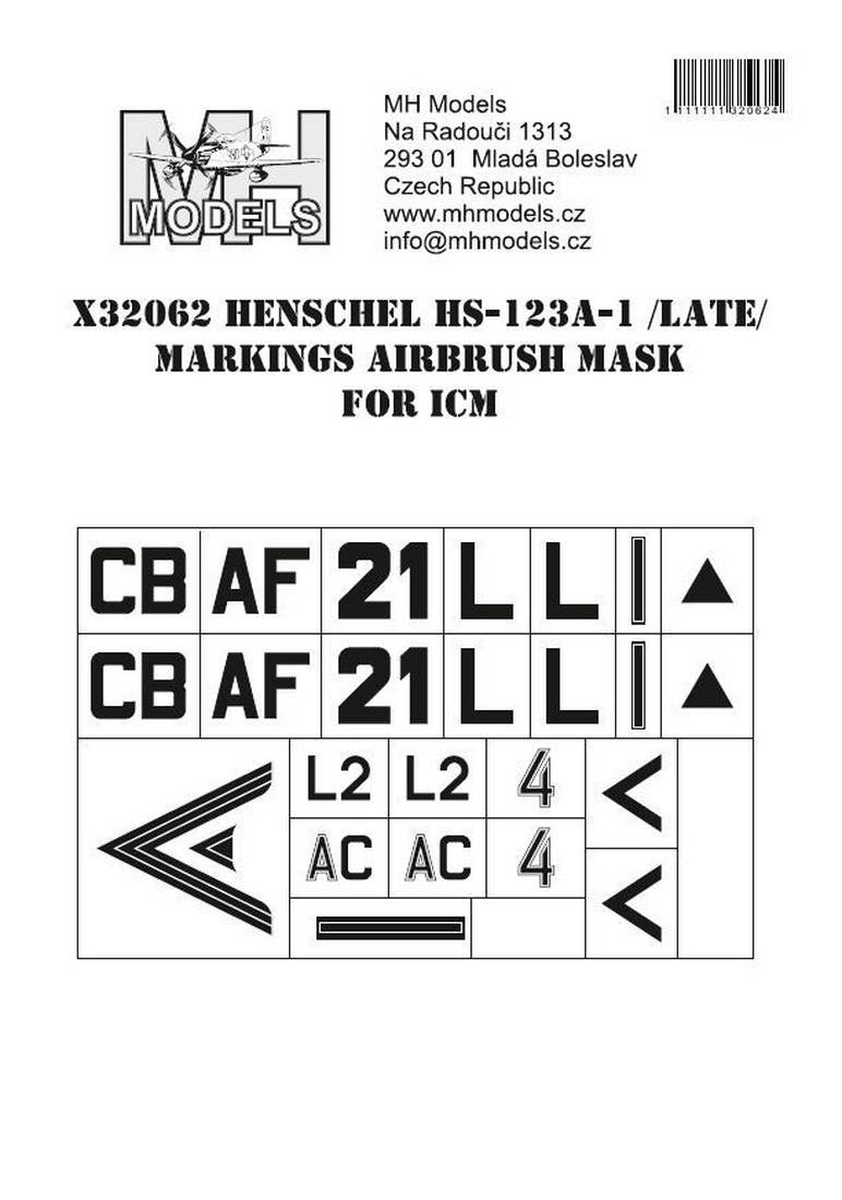 1/32 Hs 123A-1 (Late) Markings airbrush mask, for ICM