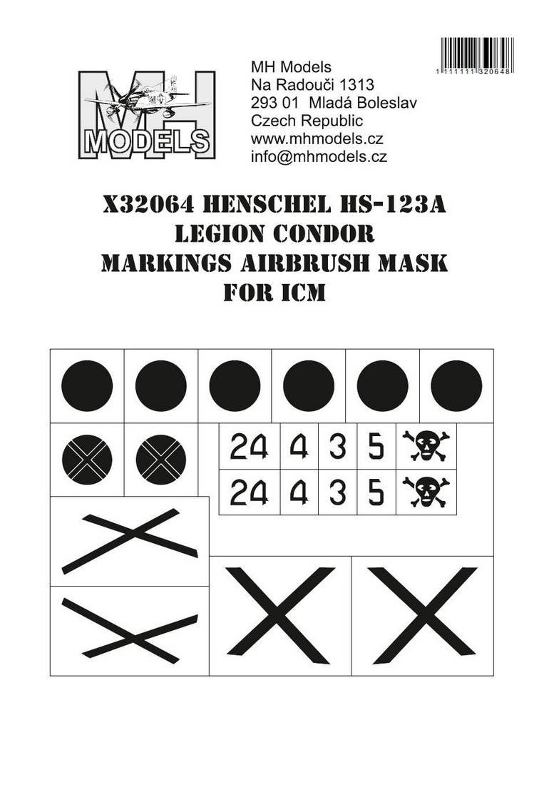 1/32 Hs 123A Legion Condor Markings airbrush mask, for ICM