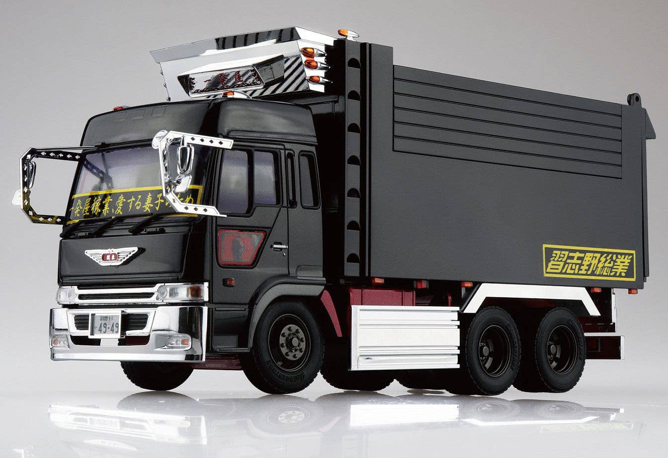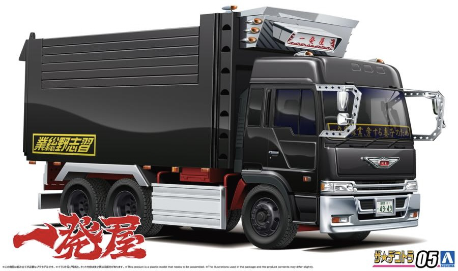 Aoshima brings back its model kit of the iconic "One-Hit Wonder" dekotora (decorated truck) for the first time in about 20 years! Characterized by its big-box dump truck, this fifth-edition kit comes with a chassis newly molded in lame red, and the cab and cargo bed are molded in metallic black. Special decals are included, and the truck bed features a dumping gimmick, too. Order this majestic dekotora for your own collection today!