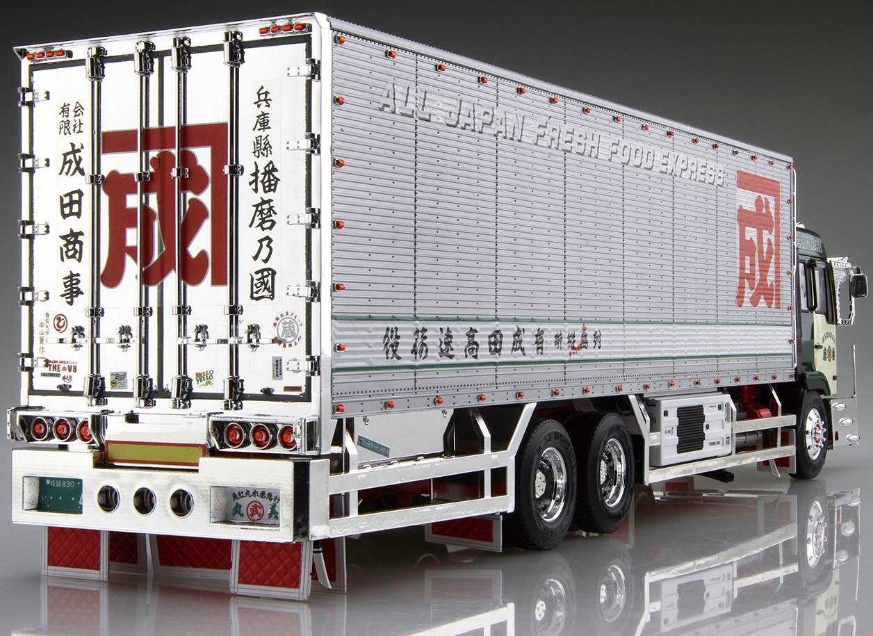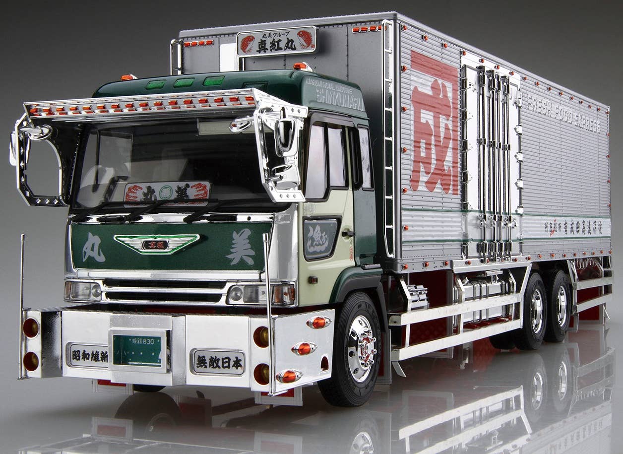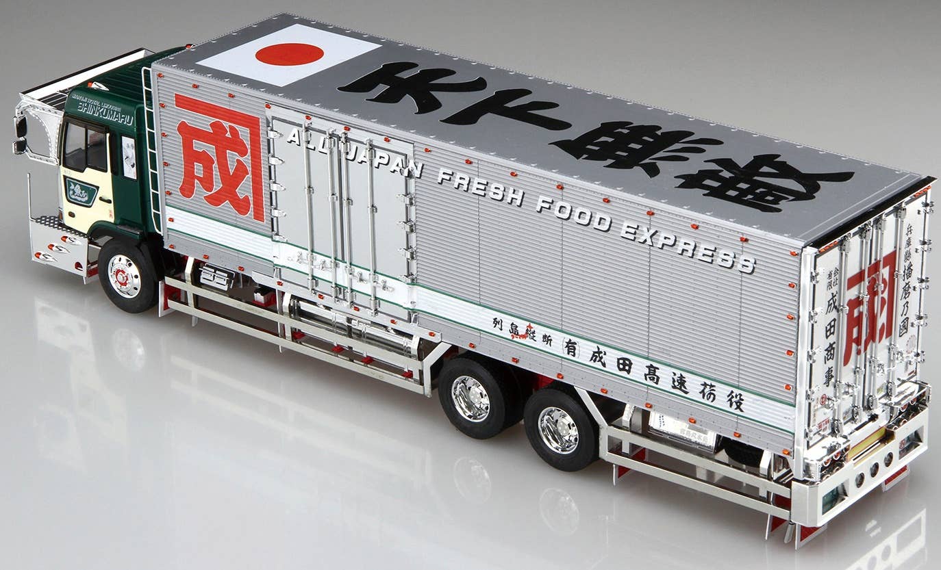 From Aoshima comes a detailed kit of the Marumi Group Narita Trading Company Shinku-Maru No.4 truck in 1/32 scale. It features plenty of new parts, including the hub cover, rear fender, W muffler, visor, side and rear bumper, and more, and new decals are included as well. Order today!