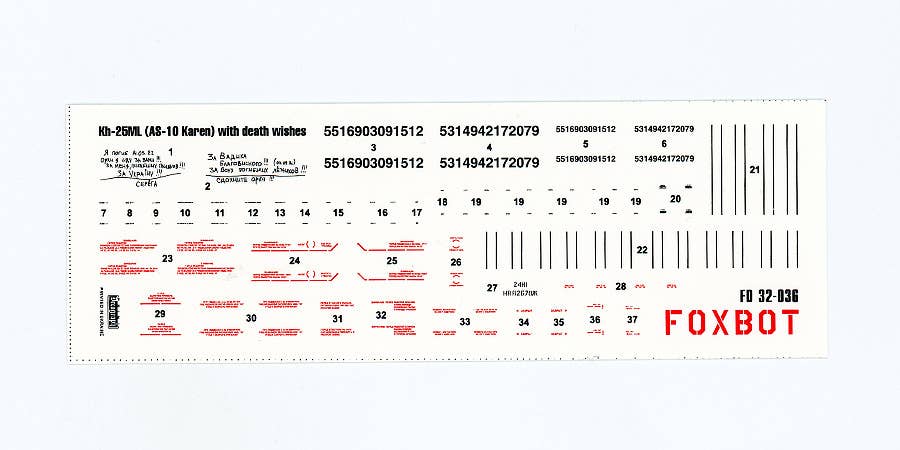 1/32 Stencils for Missile Kh-25ML (AS-10 Karen) with death wishes, Ukrainian Air Forces (Foxbot Decals)