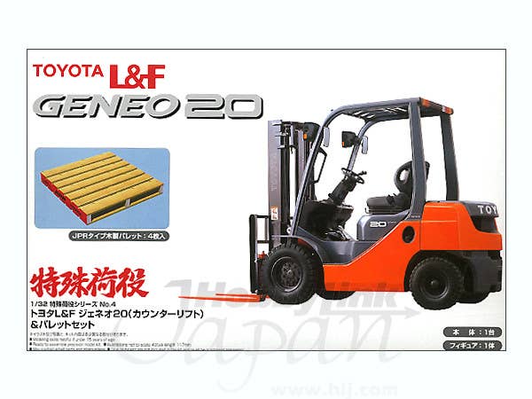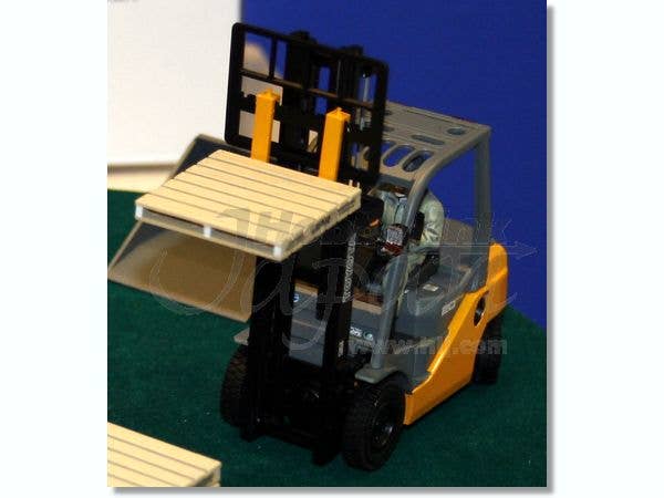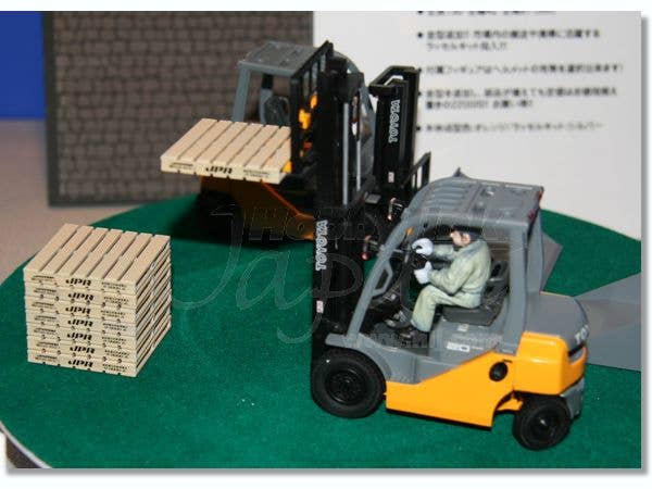 This cool model of the Toyota L&F Geneo 20 forklift is very nicely detailed and includes a set of four pallets, plus one driver figure, and decals.
