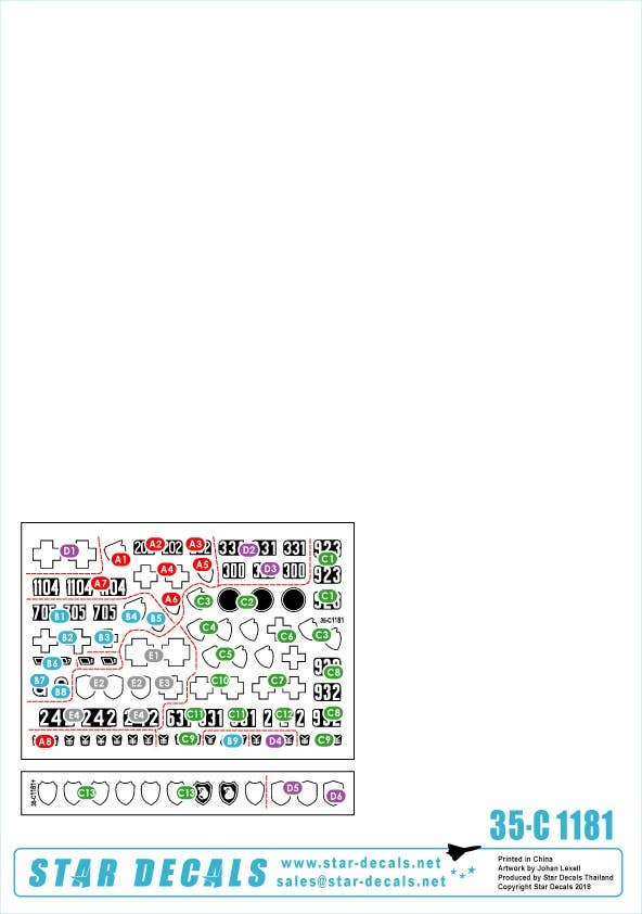 This is a set of wet transfer decals intended for an assortment of 1/35 scale vehicles from the 18. Panzer Division in 1941-43: