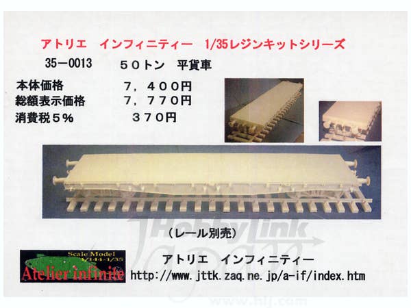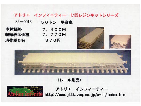 Atelier Infinite is a small company from Osaka that produces exquisitely crafted and cast resin AFV accessories and full kits. This full kit of a German 50-ton railway flat car is finely detailed and cleanly molded. Rail tracks not included.
