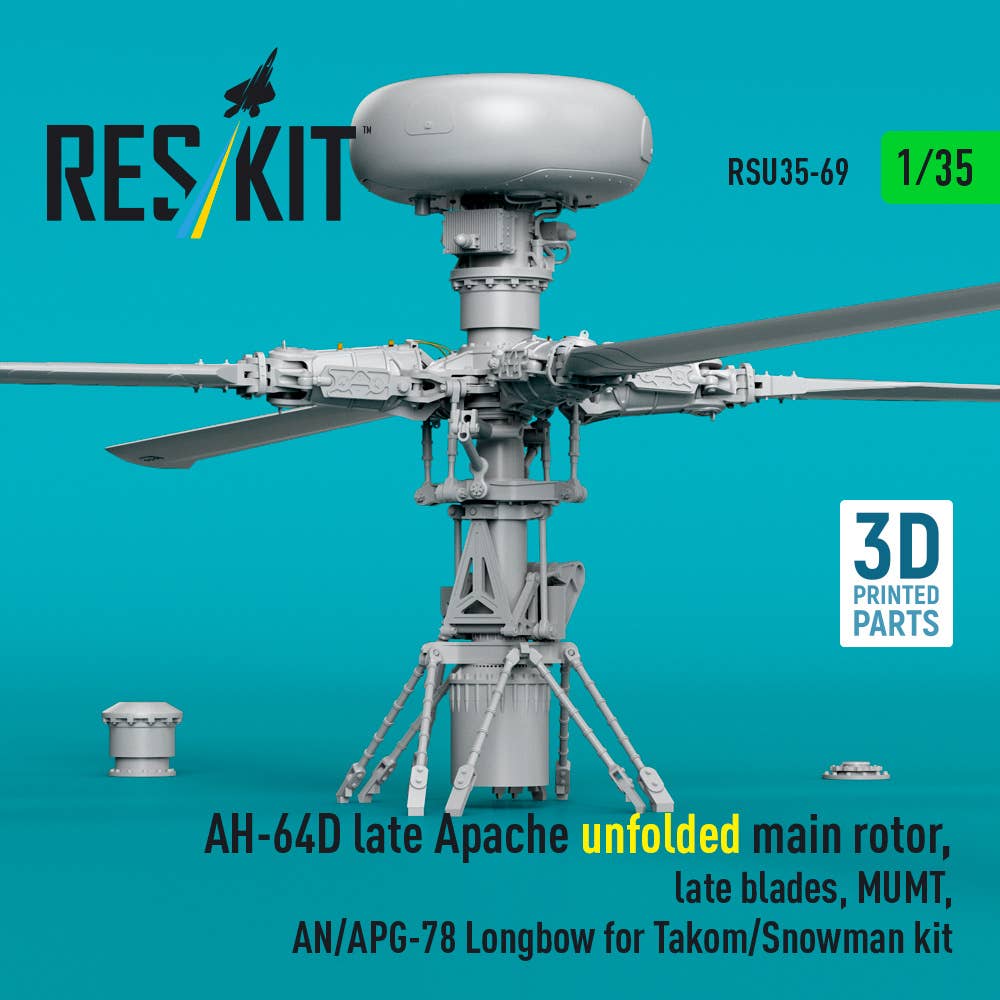 1/35 AH-64D late Apache unfolded main rotor, late blades, MUMT, AN/APG-78 Longbow for Takom/Snowman kit (3D Printed)