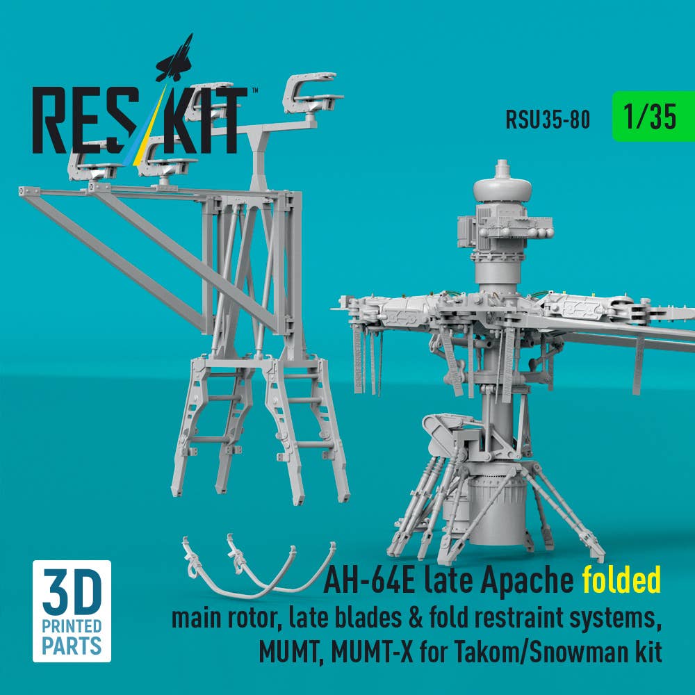 1/35 AH-64E late Apache folded main rotor, late blades & fold restraint systems, MUMT, MUMT-X for Takom/Snowman kit (3D Printed)