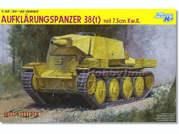 Another great release in Cyber-Hobby/Dragon's "Smart Kit" series is the Aufklarungspanzer 38(t) fitted with the 7.5cm Kw.K gun in an open-topped superstructure. Based on the well-used Czechoslovakian 38(t) chassis.