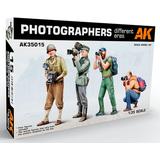 This model kit from AK Interactive is a completely new mold! It includes four figures of battlefield photographers from different eras: a U.S military photographer and a German Army movie cameraman from World War II, and two modern-day battlefield photographers. The U.S. military cameraman has a big smile and an equally big camera; the German cameraman has a movie camera. Both WWII photographers are shooting scenery away from the front line, and each wears a military uniform. The modern photographers, in contrast, wear civilian clothing and carry everything they need in a backpack, evidently shooting at a travel destination or in a city. These figures can be used in a wide range of situations. Order yours today!