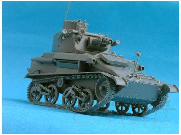 Vulcan's plastic model kit of the British Mk. VI B light tank features link-and-length injection-molded tracks, photo-etched metal detail parts, and markings for two versions.