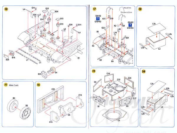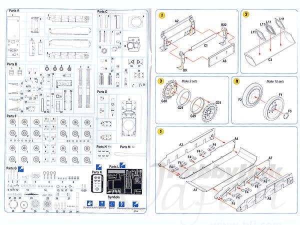 SKP's kit of the Cromwell Mk. VI CS features sharp injection-molded parts, some nicely cast resin parts, two frets of photo-etch, some nice metal/clear parts for the lights, and lengths of braided metal cord for the tow cables. The indy-link tracks are injection-molded. Waterslide decals are included for two versions. Another great kit of an interesting British tank!