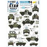 The kit includes markings for the Ferret Mk.1/2, Ferret Mk.2/3, and Saladin Mk.2 armored vehicles, which were deployed by the British Army as part of the peacekeeping forces during Turkey's invasion of Cyprus in 1974. It features five different options, with additional optional markings available for some.