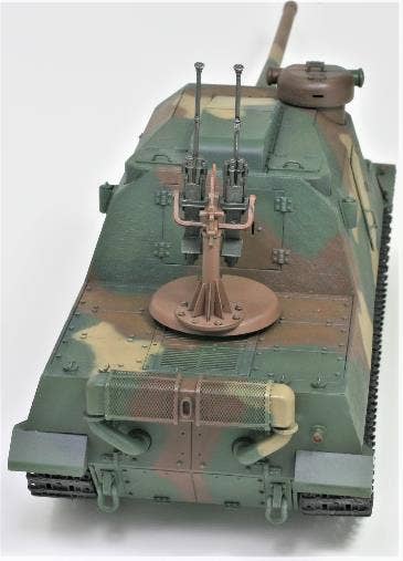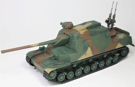 The Experimental Gun Tank Type 5 (Ho-Ri II) was designed but never prototyped. Like the Ho-Ri I, it uses the body of the Type 5 Medium Tank Chi-Ri, and an aircraft gasoline engine (water-cooloed V-type 12-cylinder) was used rather than the traditional diesel engine. The Ho-Ri II also differs from the Ho-Ri 1 in its center-located battle chamber, and its vertical armor. In addition to its other armaments, it carries a pair of 20mm high-firing anti-aircraft cannon at the rear, with a ranging gun on the cupola. Order this tank for your own collection today!