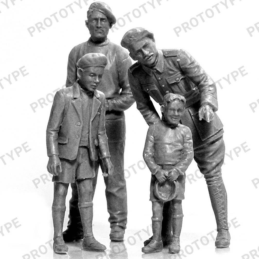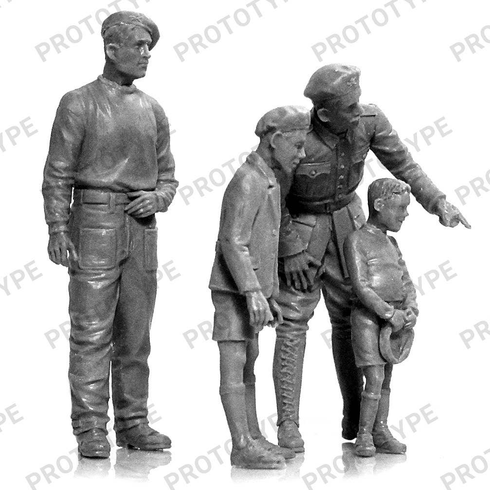 This kit from ICM includes an FCM36 light tank and five figures: one crew member is posed to ride in the tank, while the other two are standing off to the side, giving two shy but curious young boys a look at their vehicle. Order yours today!