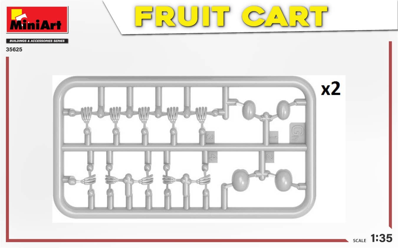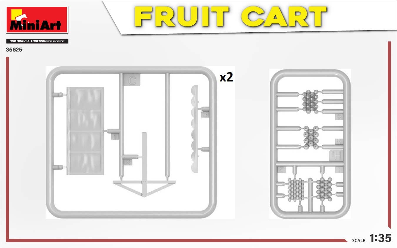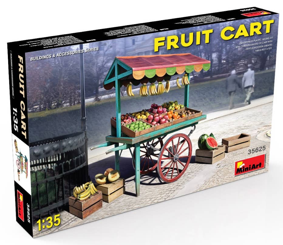 This unpainted, unassembled model kit of a fruit cart with crates allows you to replicate a peaceful vintage-style market, or possibly a high-speed car chase with disastrous results! Includes the following delectable fruits: pomegranate, watermelon, banana, orange, lemon, peach, melon, apple, pear, and kiwi. Order yours today!